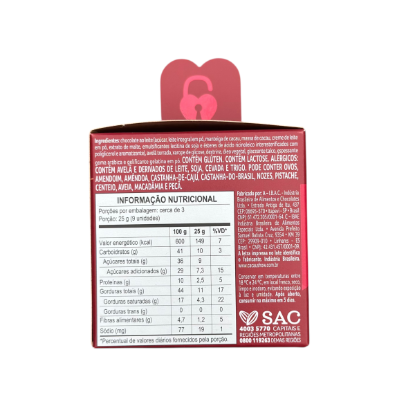- 1 mini cubo com drageados de avelã e chocolate ao leite 70gr.